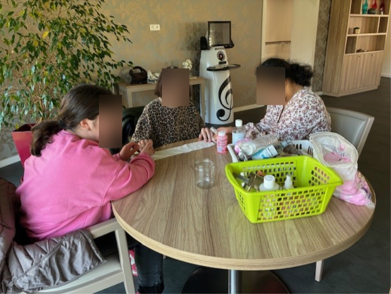Notre groupe de jeunes esthéticiennes en herbe de l'éveil ADAPEI sont revenues pour proposer bénévolement à nos résidentes et nos résidents des soins manucure. Accompagnées de leur éducatrice Marie Robas, ces jeunes filles se rendent à la Résidence Pierre Bocognano de Bastia tous les mardis matin en prenant la Micheline depuis Biguglia. C'est toujours un plaisir de les accueillir car leur venue est synonyme de sourires, de petites attentions et de lien intergénérationnel avec les participants. Nous les remercions sincèrement pour leur engagement et leur gentillesse !