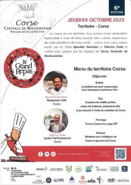 Dans le cadre de l'opération "Le grand repas" notre résidence a été sélectionnée pour faire partie de sa vidéo de promotion. "Le grand repas" est une initiative portée par le syndicat des jeunes agriculteurs corses ( instagram @ghjovani_agricultori_corsica et Facebook Ghjovani Agricultori di U Cismonte) qui vise à mettre en valeur la production agricole locale en suivant le circuit du produit du producteur jusqu'au consommateur. Ainsi, par l'entremise de notre prestataire la Centrale Corse de restauration, notre résidence a accueilli les responsables de communication du syndicat pour filmer la dernière partie du circuit et recueillir ainsi les témoignages de nos résidents à propos de ce « grand repas » spécialement élaboré pour l’occasion. Ce menu spécial se trouve en photo et n’a pas manqué de ravir nos résidents !